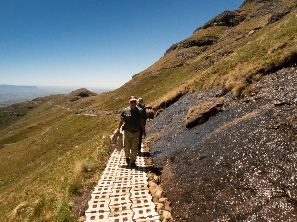 Da unser ganzes Equipement in Johannesburg gelagert ist, müssen wir dieses nach Kapstadt überstellen. Insgesamt sind wir zu sechst mit zwei Fahrzeugen unterwegs und haben uns für dieses Unterfangen eine Woche Zeit genommen. Unsere erste Etappe führte uns in zum Golden Gate Highlands Park in den Drakensbergen. Hier haben wir uns ein einsames Farmhaus gemietet und nutzten den Tag vor der nächsten Etappe für einen kurzen Ausflug auf den Sentinel um einen Blick auf das Amphitheater zu erhaschen.
